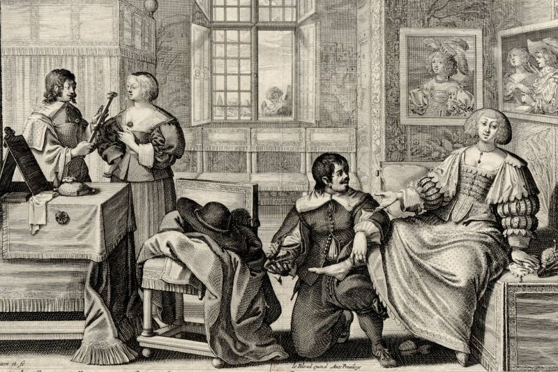 Protestant, né à Tours en 1604, Abraham Bosse est un des graveurs parisiens les plus célèbres du règne de Louis XIII. En effet, il laisse à sa mort en 1676 une oeuvre très prolixe mais surtout très précise de la vie quotidienne de son temps.