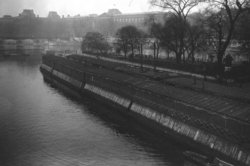 En guise de souvenir de ce bateau-lavoir qui fut présent pendant de nombreuses décennies en bas du pont Neuf, nous pouvons profiter d’une belle photographie réalisée par Eugène Atget, mais aussi une autre de la part de l’Agence Roll.