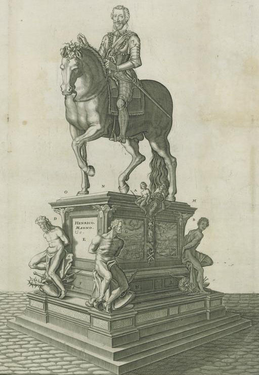 Après la mort du roi, on paça en 1614 une statue à sa gloire au croisement de la pointe de la place Dauphine et du pont neuf. Elle fut détruite à la Révolution et une seconde la remplaça à partir de la Restauration.
