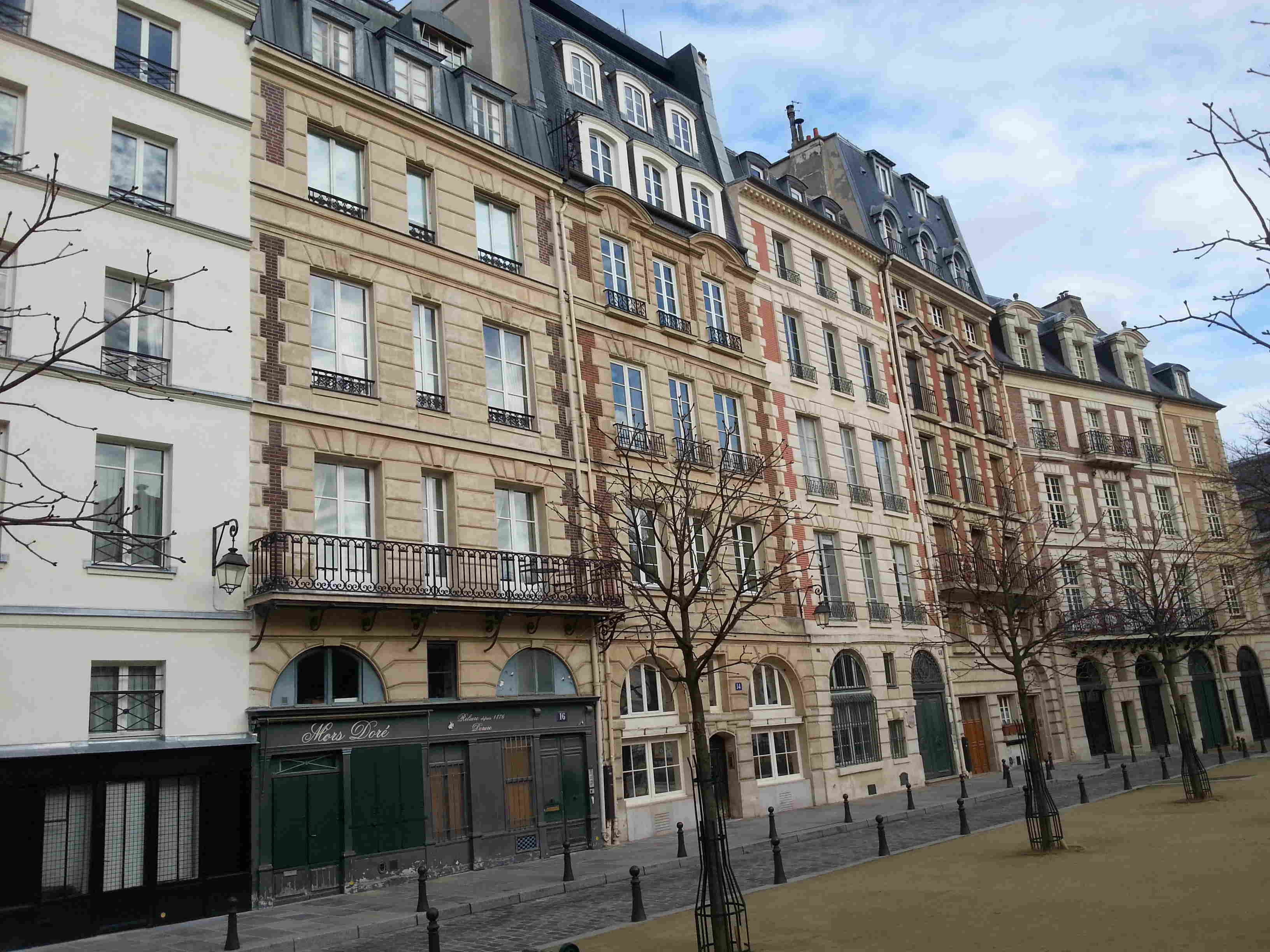 Opportuniste mais aussi urbaniste, Henri IV profita de l’aménagement de la pointe Ouest de l’île de la Cité et du pont neuf pour y installer une de ses places royales : la place Dauphine.