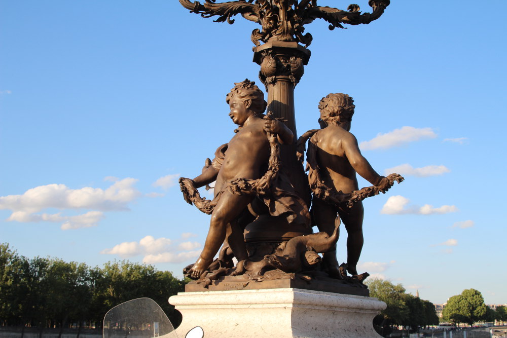 Cela se traduit par une attention aux lampadaires (en particulier ceux du pont Alexandre III), des parapets, mais aussi sur les culées des ponts. |